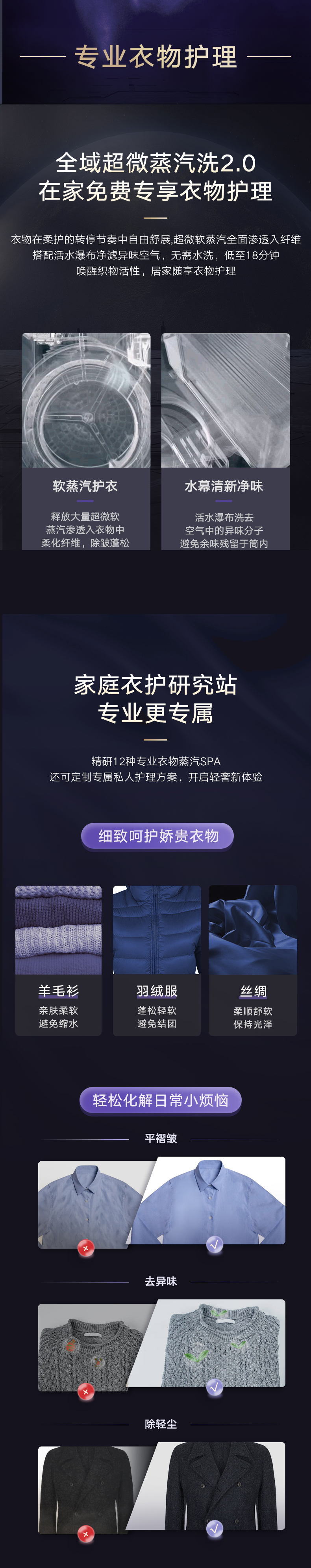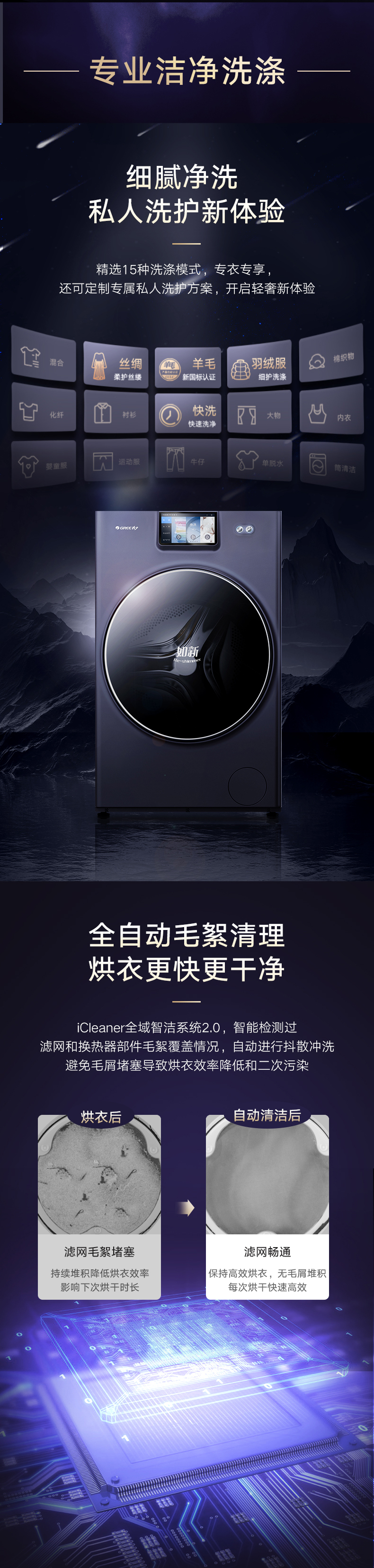 37℃低溫柔烘不傷衣;全域超微蒸汽洗2.0;ICleaner全域智清潔